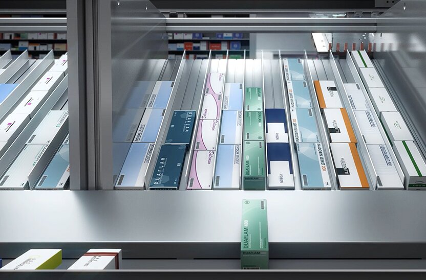 Modul s brzim skladištenjem s prednje strane uz više od 100 pretinaca omogućuje skladištenje do 350 pakiranja/sat bez prekida. Proizvodi su odmah nakon skladištenja dostupni za izdavanje.
